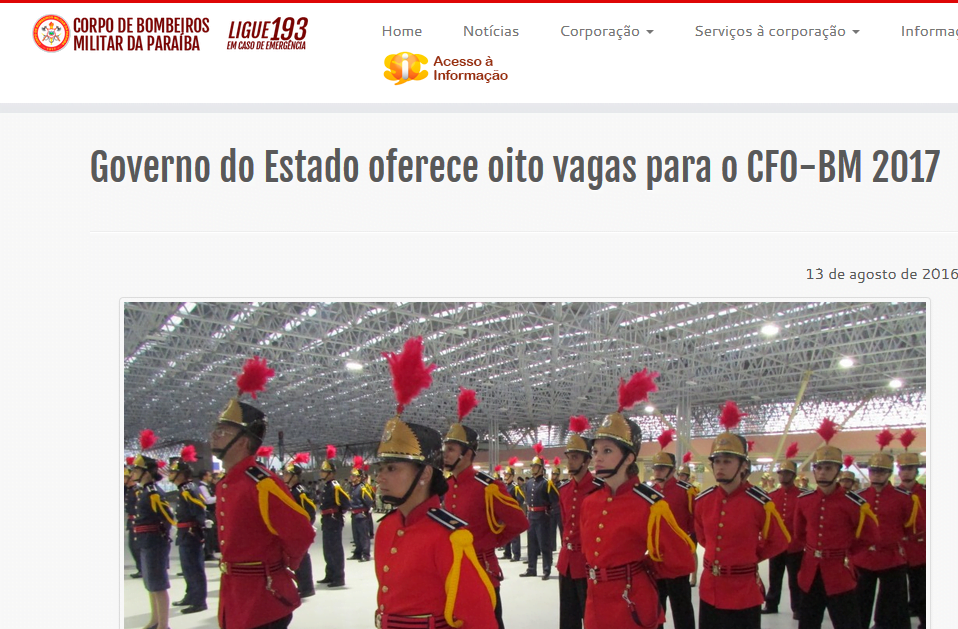 As inscrições do Concurso Bombeiros da Paraíba 2016 – Oficiais CFO seguem abertas até 21 de setembro de 2016. O documento foi divulgado no Diário Oficial do Estado, com objetivo de preencher 08 (oito) vagas no Curso de Formação de Oficiais para ingresso em 2017.