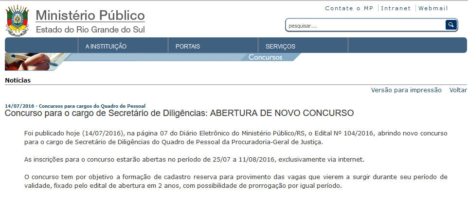 A validade do concurso será de 24 meses, mas pode ser prorrogado por igual período, a critério do MP-RS. Confira o edital de Concurso do MP-RS 2016.