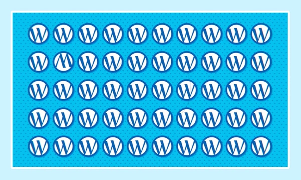 O Desafio: Em uma imagem com fundo azul, existem 50 ícones circulares do WordPress organizados em 5 linhas e 10 colunas. Um deles é diferente dos demais. Você consegue achar?