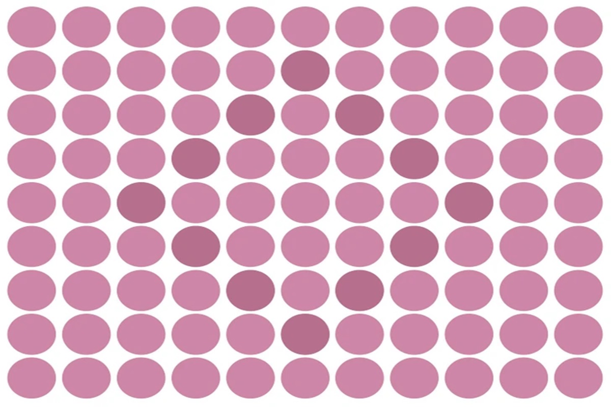 Prepare-se para um novo desafio visual que vai avaliar sua atenção. A imagem exibe vários círculos cor-de-rosa, com tonalidade diferente, formando um losango camuflado e o desafio é encontrar este losango escondido em até 30 segundos.