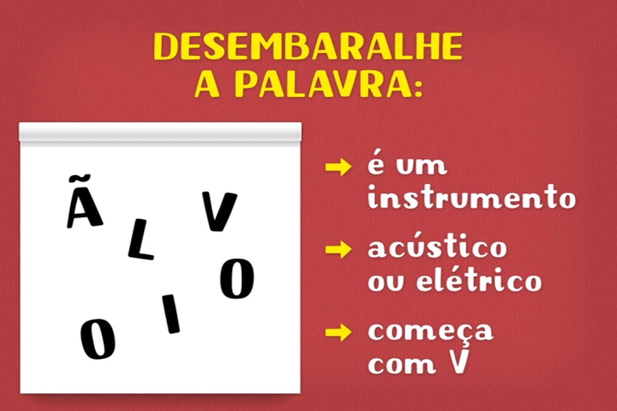 Prepare-se para o desafio de hoje que vai testar sua percepção! Observe com bastante atenção a imagem com um jogo de palavras e com as letras embaralhadas.