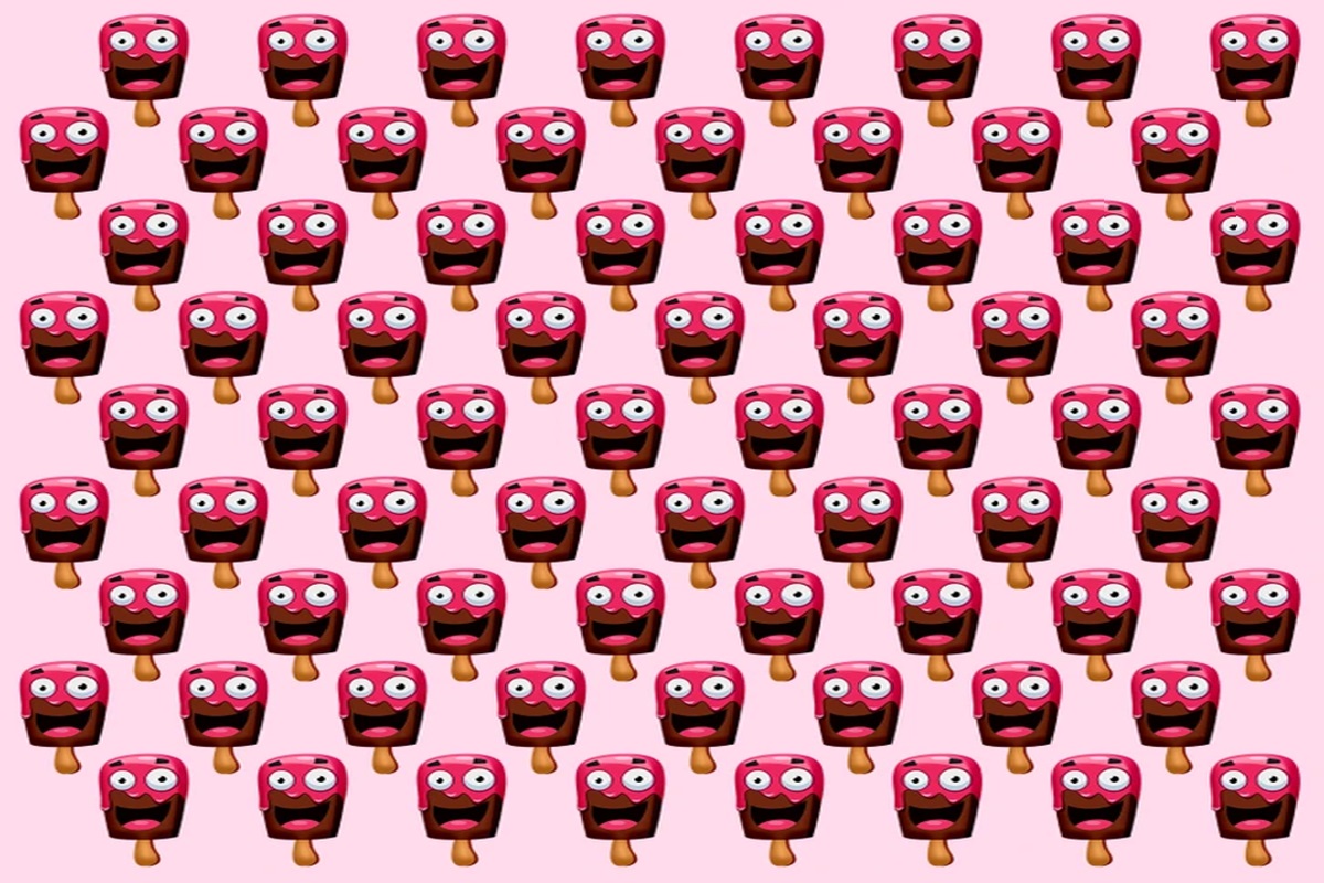 Prepare-se para o desafio de hoje que vai testar sua percepção! Observe com bastante atenção a imagem com uma série de picolés cor-de-rosa com olhos grandes e sorrisos. Todos parecem iguais, exceto um.