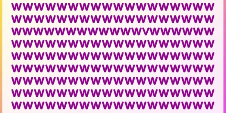 Prepare-se para o desafio de hoje que vai testar sua percepção! Analise a imagem que apresenta um padrão composto por várias letras W roxas, alinhadas uniformemente em linhas horizontais, sobre um fundo que varia de rosa a lilás, criando um contraste. O desafio é identificar a letra V camuflada na imagem. Você terá até 20 segundos para encontrar.