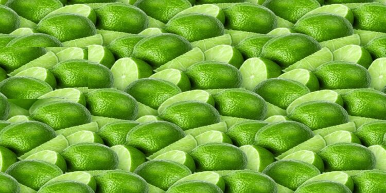 Prepare-se para o desafio de hoje que vai testar sua percepção! Veja uma imagem detalhada com vários limões verdes, inteiros e alguns cortados ao meio, evidenciando sua textura.