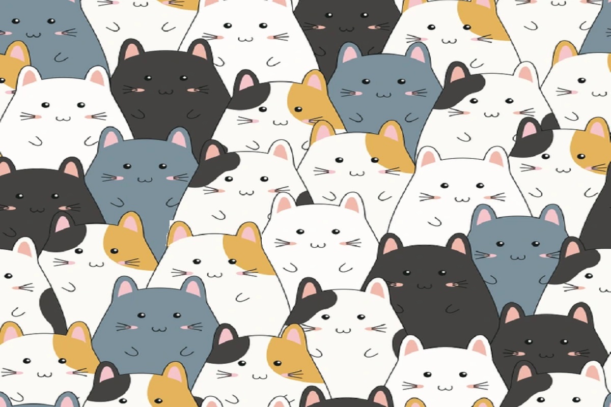 Prepare-se para um novo desafio que vai avaliar sua atenção. Observe a imagem com um padrão composto por várias ilustrações de hamsters, com cores como branco, preto, cinza e caramelo. Seu objetivo é encontrar o gatinho camuflado na imagem em até 15 segundos.