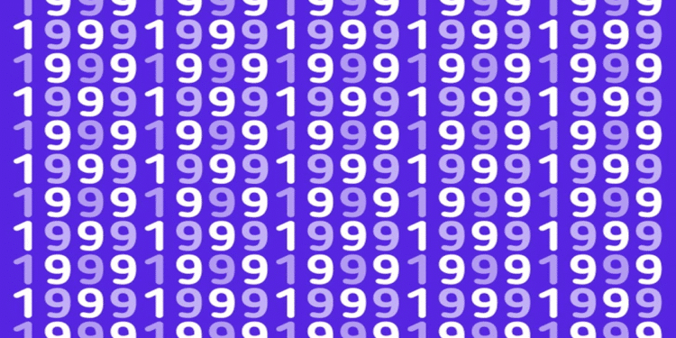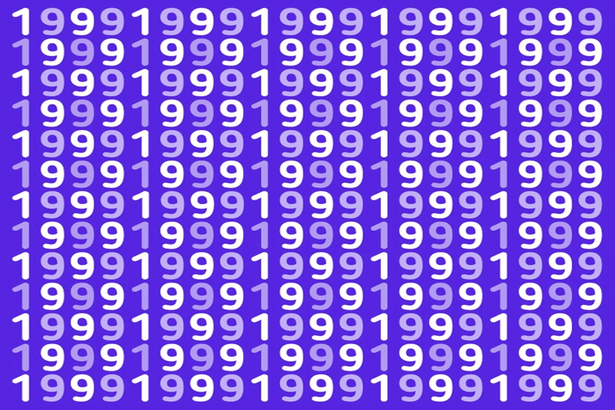 Prepare-se para o desafio de hoje que vai testar sua percepção! Observe atentamente: a imagem apresenta várias sequências do número 1999 em diferentes tonalidades claras sobre um fundo azul, com um único número 1998 escondido entre elas. Você consegue encontrar em até 30 segundos o 1998 nesta imagem?