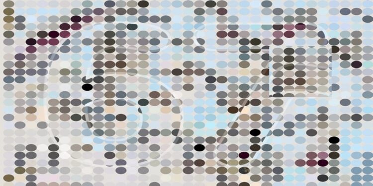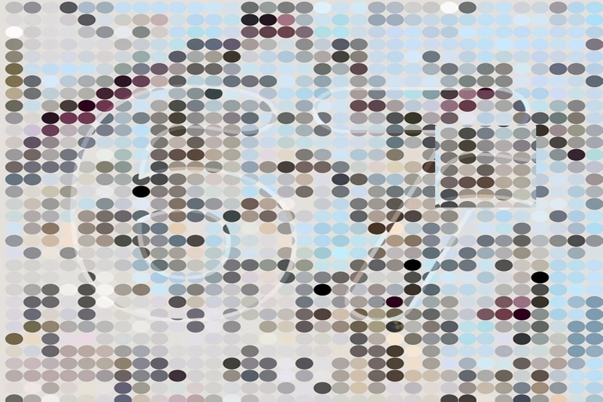 Prepare-se para o desafio de hoje que vai testar sua percepção! Observe atentamente: a ilustração mostra uma composição abstrata formada por inúmeros pontos coloridos dispostos de maneira irregular, misturando tons de cinza, azul, bege e marrom sobre um fundo claro.