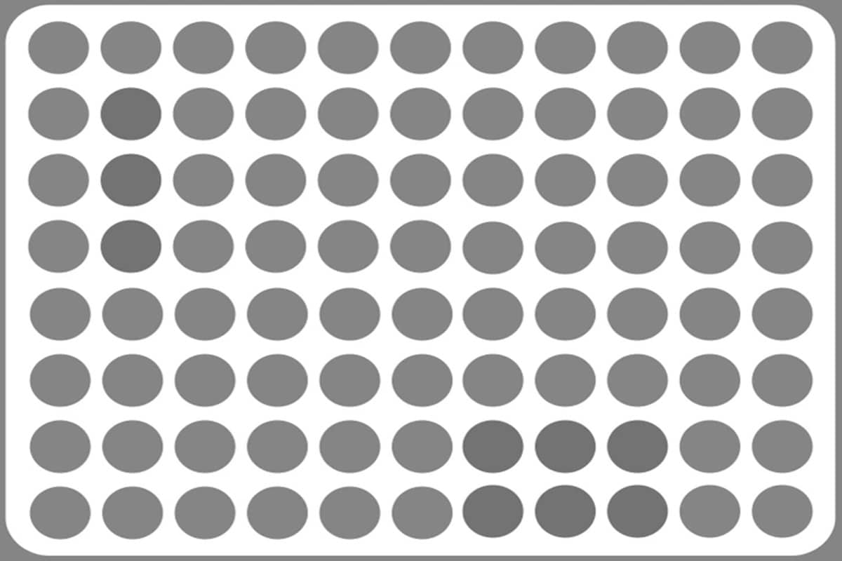 Prepare-se para o desafio de hoje que vai testar sua percepção! Observe atentamente. A imagem mostra uma variedade de círculos cinza, organizados de maneira alinhada. Você consegue encontrar em até 30 segundos a palavra LUZ camuflada nesta imagem?