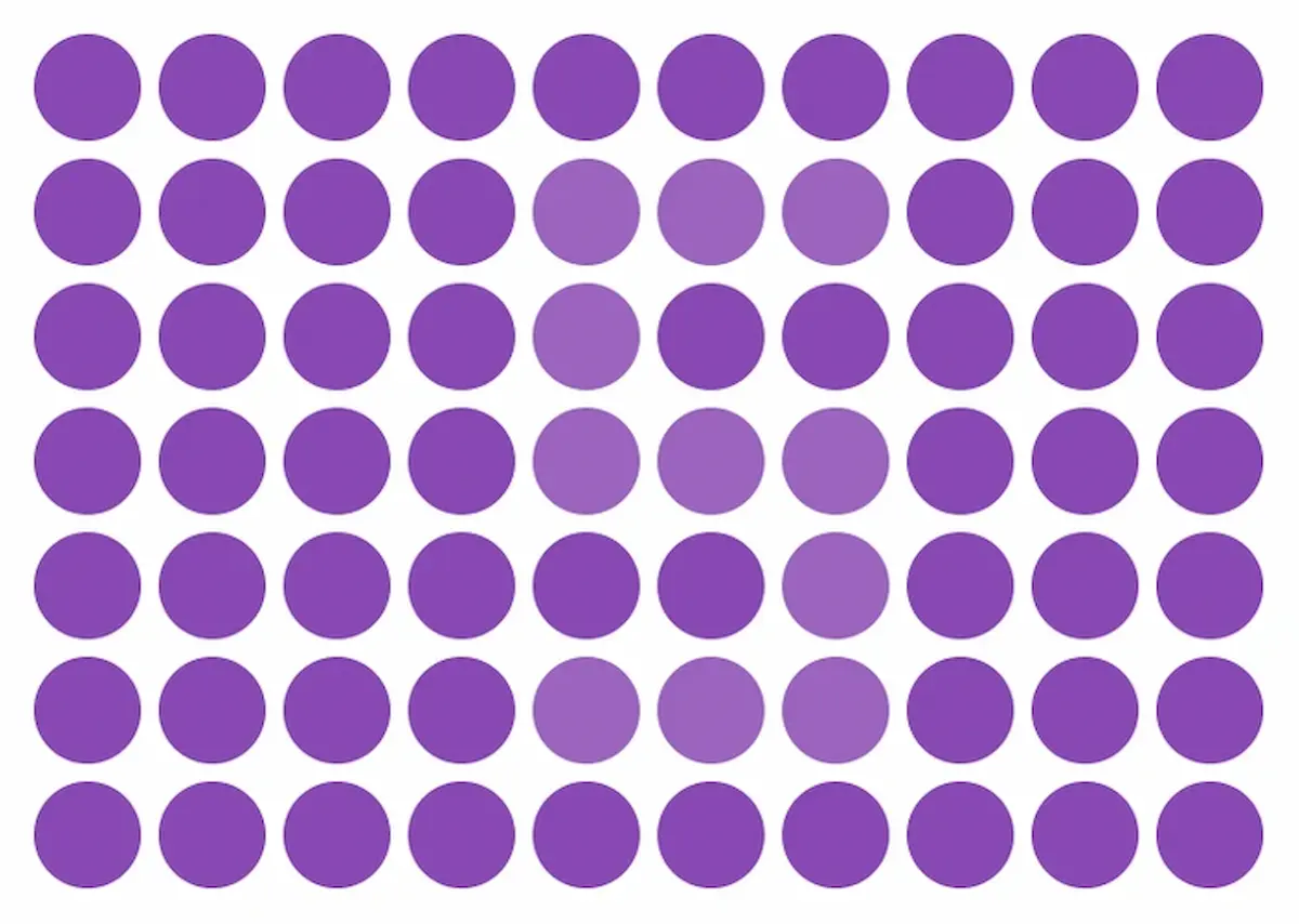 - Atenção as cores: A imagem apresenta círculos com dois tons de roxo, um mais claro e outro mais escuro. Essa variação pode servir como uma distração. Tente focar exclusivamente no formato do número 5 para encontrá-lo.