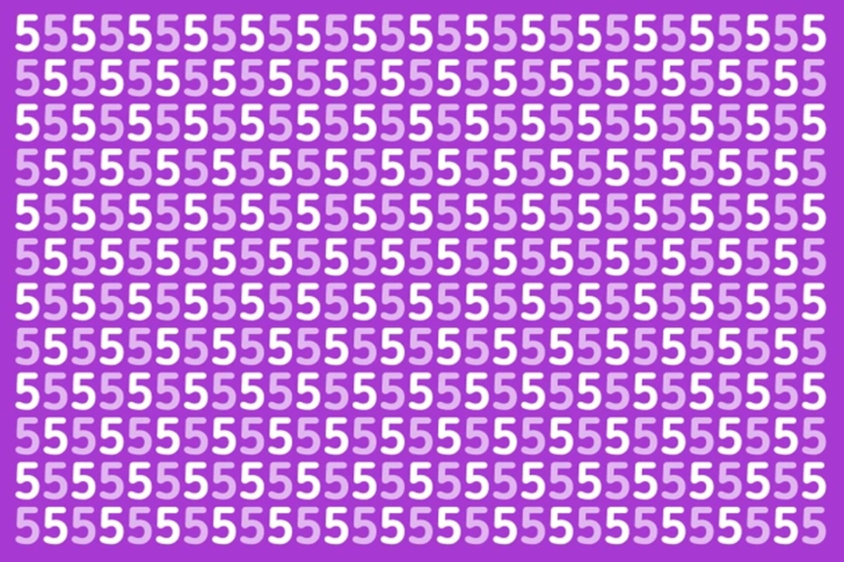 Prepare-se para o desafio de hoje que vai testar sua percepção! Observe atentamente: esta imagem apresenta diversos números 5 brancos organizados em linhas e colunas sobre um fundo roxo. Entre eles, há um único número 9 escondido, desafiando quem tenta encontrá-lo rapidamente. Você consegue encontrar em até 20 segundos?