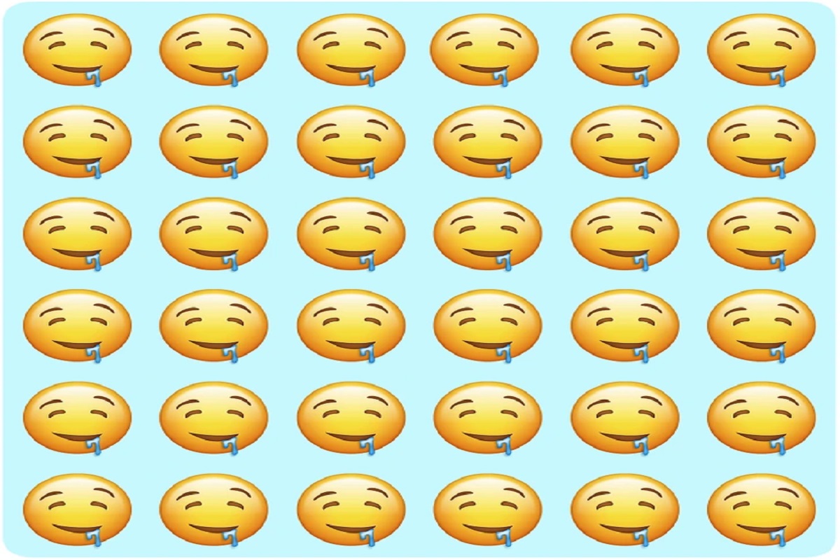 Prepare-se para um novo desafio visual que vai avaliar sua atenção. A imagem deste desafio visual exibe vários emojis com baba alinhados em padrão sobre fundo azul-claro. Apenas um emoji destoa dos demais. O seu desafio será encontrar o emoji fora do padrão em até 20 segundos.