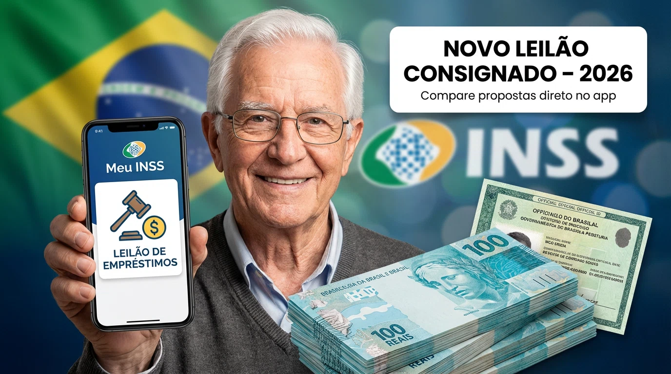 O Leilão do Consignado é um mecanismo digital que permitirá ao aposentado ou pensionista informar seu interesse por um novo empréstimo consignado diretamente pelo app ou site Meu INSS. A partir desse cadastro, diversos bancos participantes apresentarão automaticamente suas propostas, informando condições como taxas de juros e prazos.