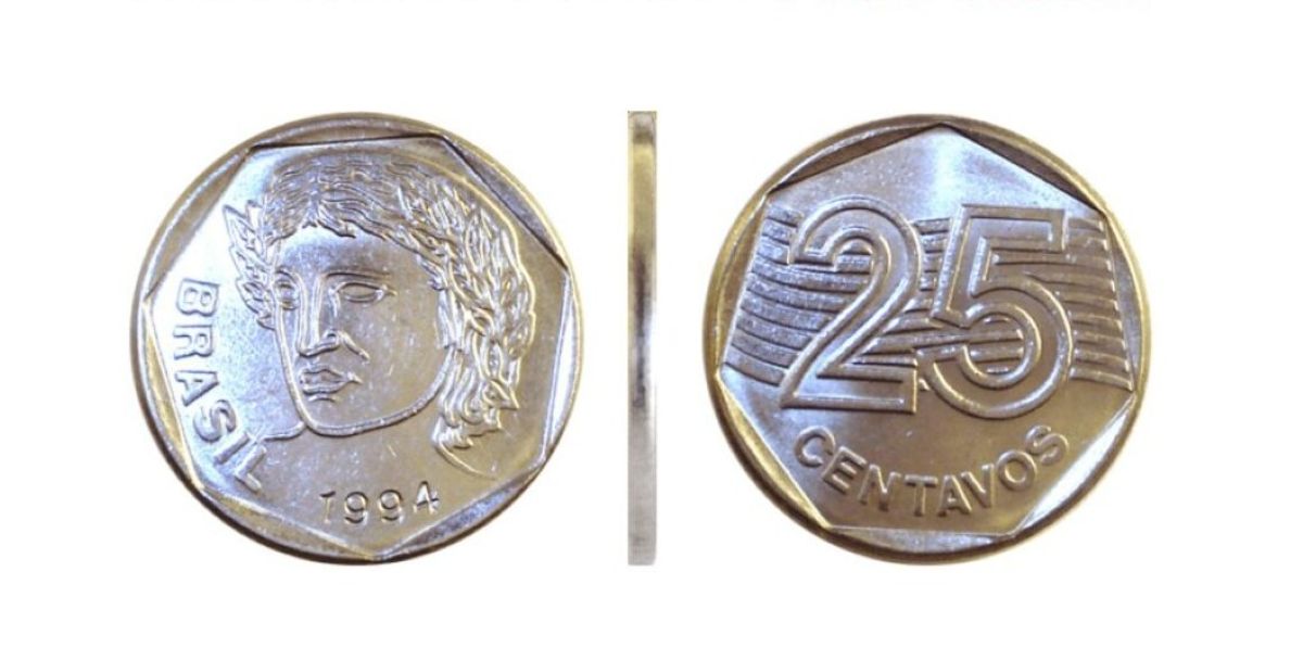 Quanto vale a moeda de 25 centavos 1994 com erro?