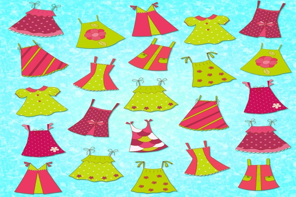 Prepare-se para um novo desafio visual que vai avaliar sua atenção. Observe a ilustração que mostra vários vestidos infantis com estampas e cores variadas em fundo azul. O seu desafio é identificar o único vestido que não tem um par em até 20 segundos.