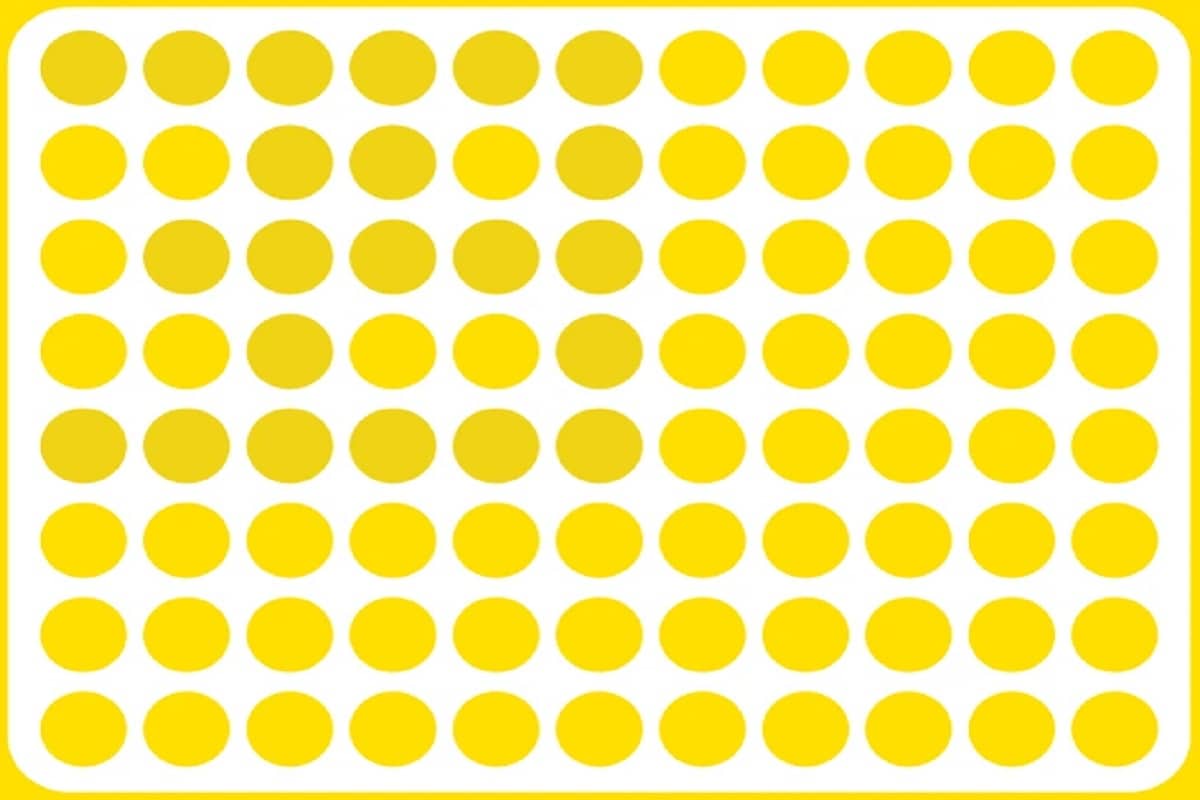 Prepare-se para o desafio de hoje que vai testar sua percepção! A imagem mostra uma cartela branca de cantos arredondados, com linhas formadas por pontos amarelos. O design é simples e bem organizado, destacando o contraste nítido entre os pontos e o fundo branco. Você consegue encontrar em até 20 segundos o número 39 escondido nesta imagem?