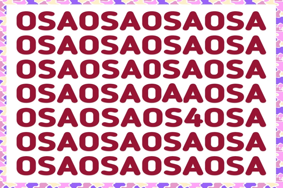 Prepare-se para um novo desafio visual que vai avaliar sua atenção. A imagem exibe múltiplas linhas da sequência OSAOSAOSA. Números 0, 5 e 4 estão camuflados, tornando o desafio interessante para treinar foco e raciocínio analítico. Você terá até 25 segundos.