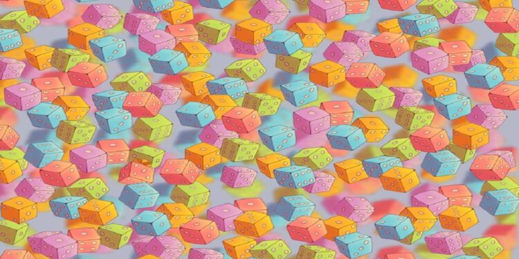 Prepare-se para o desafio de hoje que vai testar sua percepção! Observe com atenção a imagem composta por diversos cubos tridimensionais em cores vibrantes, cada um exibindo pontos numerados semelhantes aos de dados tradicionais, distribuídos aleatoriamente sobre um fundo cinza neutro, formando um padrão visual único. Você consegue encontrar em até 20 segundos o presente camuflado nesta imagem?
