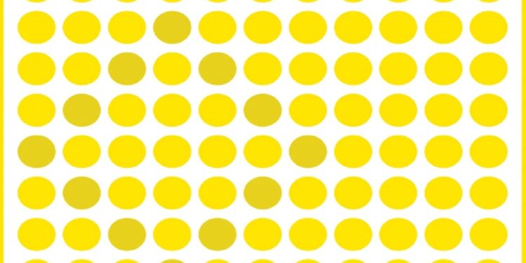 Os pontos têm tonalidades variando do amarelo-claro ao amarelo mais escuro em algumas áreas. Você consegue encontrar em até 25 segundos o quadrado camuflado nesta imagem?