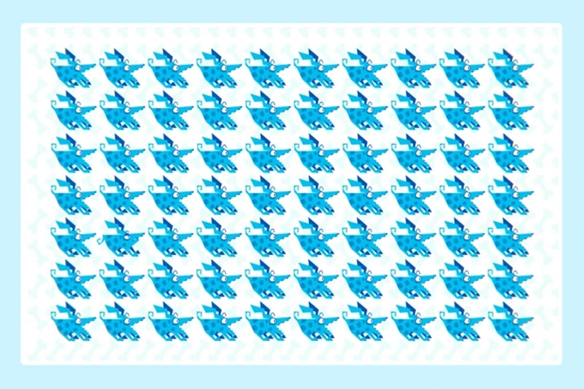 Prepare-se para um novo desafio visual que vai avaliar sua atenção. Observe os detalhes da imagem organizada com diversos cachorros azuis. A sua missão de hoje é descobrir qual é o único cachorro fora do padrão na imagem em até 25 segundos.