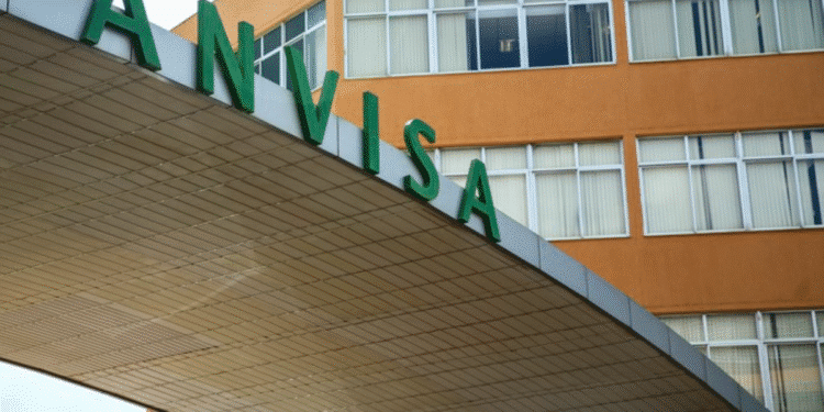 Fachada da sede da Anvisa com o nome da agência em destaque.