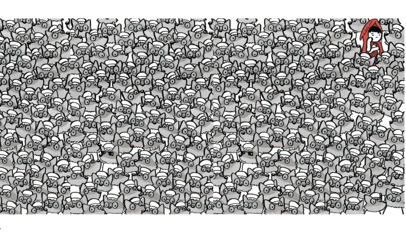 Agora que você já compreende o por que os desafios visuais fazem tanto sucesso, está preparado para participar de um? Se a resposta for sim, encontre a vovó escondida entre os lobos. Lembre-se: você só tem 5 segundos.