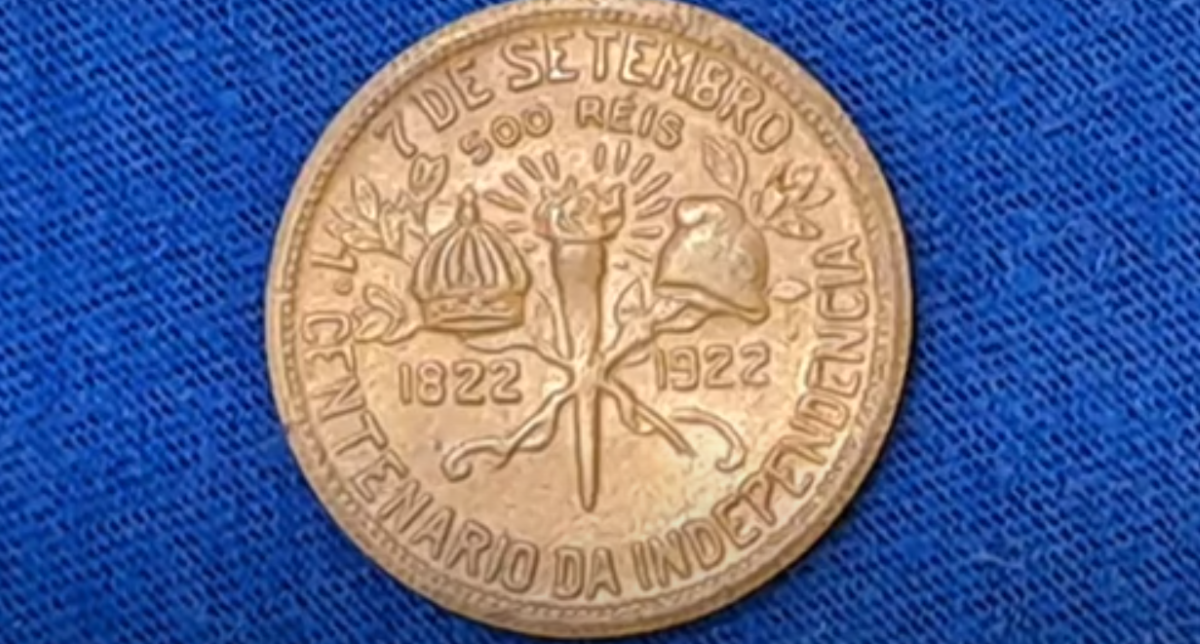 Essa moeda reúne todas essas condições. Além de ter sido feita em 1922, foi criada para homenagear um momento importante da história do Brasil e ainda pode conter um defeito raro.